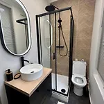個別のトイレ とシャワ-がある1室のバスル-ムは楽しみます.